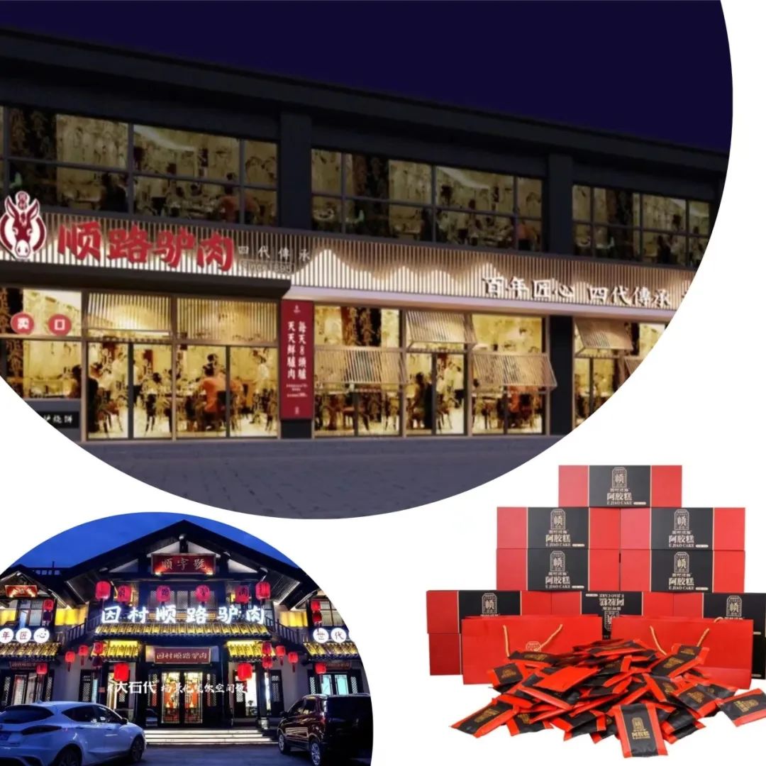 如今裝修一新的老店營業(yè)面積達到1860平方米,可以同時容納400多人用餐。菜品種類從以前的20多道增加至100多道,同時與山東廠家合作,自主加工生產(chǎn)了阿膠片、阿膠粉、驢肉醬、阿膠糕等產(chǎn)品。新產(chǎn)品開通了線上、線下銷售渠道,推動營銷擴大“因村順路驢肉”品牌影響力。