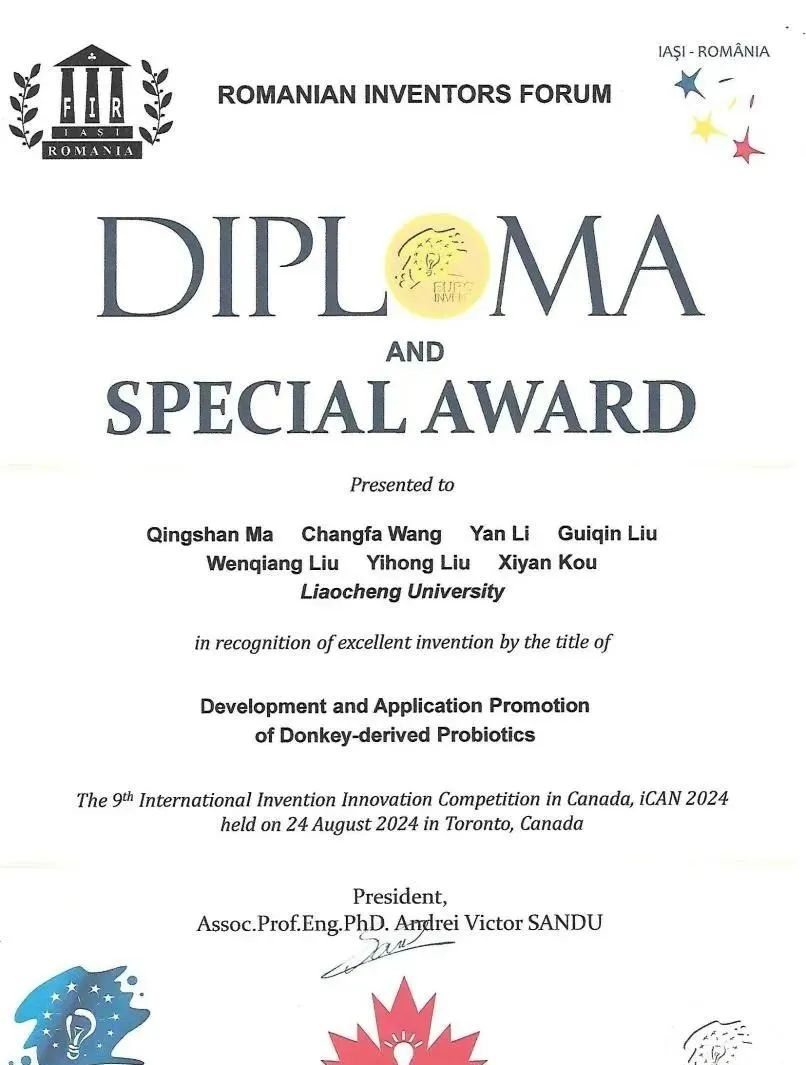 近日,“第九屆加拿大國際發(fā)明創(chuàng)新大賽”公示評審結果日前揭曉,毛驢研究院的“Development and Application Promotion of DonkeyDerived Probiotics”項目榮獲大賽銀獎及國際特別獎。