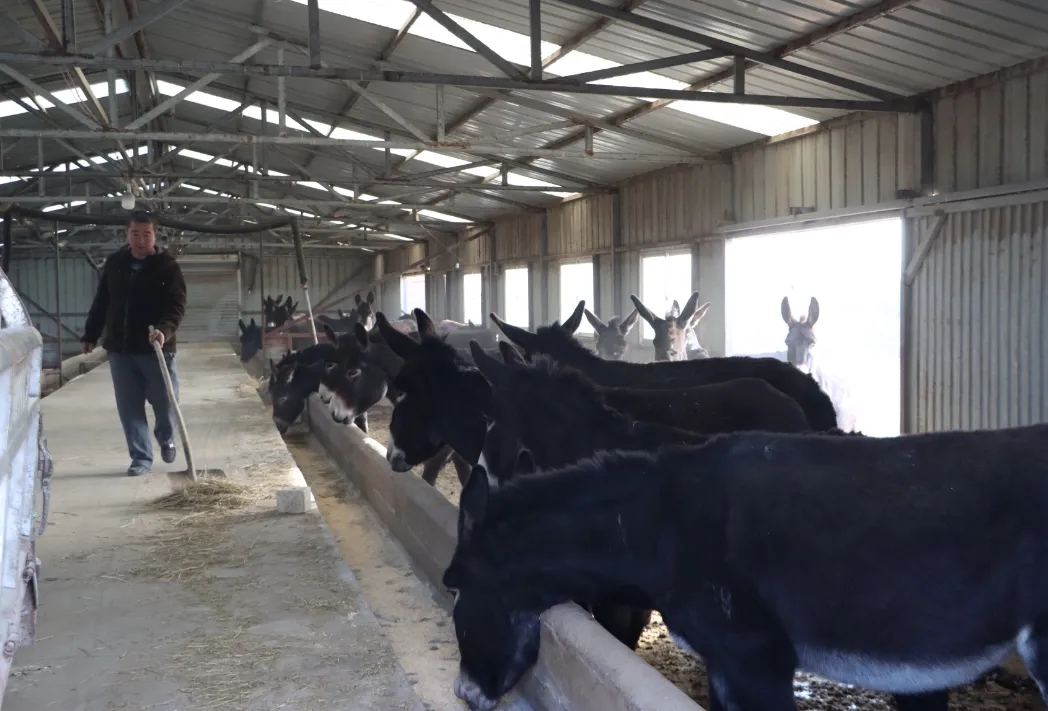走進(jìn)位于該縣陳官屯鎮(zhèn)的秦皇島成祥牧業(yè)有限公司毛驢養(yǎng)殖場,筆者看到,一頭頭毛色烏亮、體態(tài)矯健的毛驢正在圈舍旁等待喂食,技術(shù)員趙紅波正忙著清理圈舍,給毛驢“加餐”。他說:“早上是6點,下午是5點開始喂,到驅(qū)蟲的時候還得驅(qū)蟲,一年驅(qū)三回到四回。”