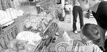 市場上出售的小狗 南海網(wǎng)10月23日消息:“沒想到一只小狗仔,一個月時間奪走三條人命。”今天上午,正在給朋友辦理喪事的莊先生,悲痛地對記者說?! 〖易〔?/p>