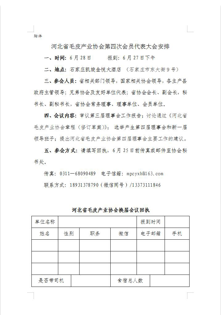 河北省毛皮產(chǎn)業(yè)協(xié)會第四次會員代表大會安排
