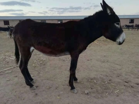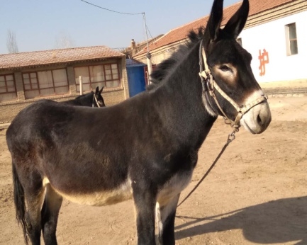 晉南驢,產(chǎn)于山西南部,以夏縣、聞喜兩縣為中心產(chǎn)區(qū)。包括平陸、芮城、永濟(jì)、臨猗等縣市及臨汾南部各縣市。體格高大,頭頸高昂,耳大而長,鬐甲稍低,背部平直,四肢端正。毛色以黑色并帶有“三白”(兩眼圈白、嘴頭白、肚皮白)為特征。晉南驢8~12個月有發(fā)情表現(xiàn),初配年齡為2.5~3歲,發(fā)情周期平均為22天,發(fā)情持續(xù)期為4~8天,妊娠期為12個月,母驢以3~10歲生育能力最強。晉南驢產(chǎn)肉性能較好,幼駒生長發(fā)育較快,1歲以內(nèi)發(fā)育更快,1歲時體高可達(dá)成年體高的90%左右。
