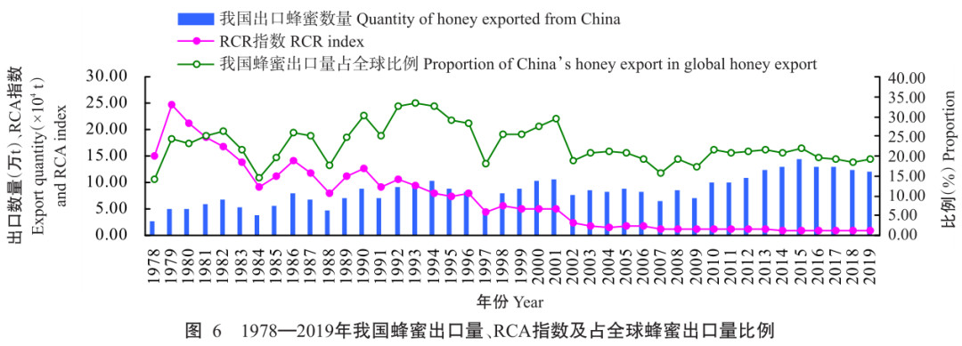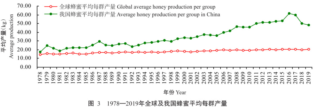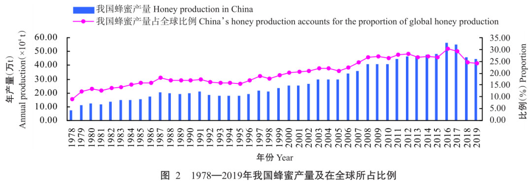 養(yǎng)蜂業(yè)是以人工飼養(yǎng)蜜蜂獲得蜜蜂等產物的的農業(yè)生產部門,是現代農業(yè)生產體系的重要組成部分。目前我國養(yǎng)蜂業(yè)主要通過獲得蜂產品取得收入,其中蜂蜜是最主要的蜂產品,也是蜂農養(yǎng)蜂的主要經濟來源。蜜蜂授粉技術研究和推廣沒有得到足夠重視,養(yǎng)蜂業(yè)的生態(tài)、社會效益沒有得到充分發(fā)揮。追花奪蜜、產蜜售蜜是我國養(yǎng)蜂業(yè)現狀的一個縮影,通過我國蜂蜜產業(yè)發(fā)展狀況可了解我國整個蜂產業(yè)的現狀。我國是全球蜂蜜主要生產國和出口國之一,2019年,我國(不包括港澳臺地區(qū))蜂蜜產量達44.41萬噸,出口量達12.08萬噸,均位居世界首位。我國雖是養(yǎng)蜂大國,但不是養(yǎng)蜂強國,也不是蜂蜜貿易強國。目前我國蜂蜜生產和國內外市場還存在諸多問題,因此,解析我國蜂蜜生產現狀和蜂蜜國內外市場形式可為我國蜂產業(yè)健康、可持續(xù)發(fā)展提供參考依據。我國地域遼闊,自然蜜源植物豐富,擁有得天獨厚的自然養(yǎng)蜂資源,理論上具有承載5000萬群蜜蜂的能力。但由于我國蜂業(yè)資源布局不平衡、缺乏合理利用,大量的蜜粉資源沒有合理利用。在發(fā)達國家,養(yǎng)蜂業(yè)具有機械化和規(guī)?;奶攸c,80%的收益來自于蜜蜂為農作物授粉,只有20%的收益來自于蜂產品。我國約有2000年的人工養(yǎng)蜂歷史,但養(yǎng)蜂業(yè)的飼養(yǎng)方式及管理技術卻進展緩慢,與國際養(yǎng)蜂強國相比,我國養(yǎng)蜂技術仍處于初級階段,相當一部分還是傳統的土法飼養(yǎng),機械化程度低,飼養(yǎng)規(guī)模小且較分散。歐美等國家養(yǎng)蜂的主要目是為農作物授粉,蜂產品只是作為養(yǎng)蜂的附加產品,而我國養(yǎng)蜂與發(fā)達國家不同,主要用于蜂產品生產,蜜蜂為農業(yè)作物授粉反而是我國蜂產品生產的附帶產物。目前我國養(yǎng)蜂業(yè)與種植業(yè)相對獨立,蜜蜂授粉增產措施被擱置,養(yǎng)蜂價值的最大化方面沒有得到有效發(fā)揮,整個行業(yè)處于農業(yè)生產邊緣,主動應用蜜蜂授粉的意識并不是很強;同時受土地資源條件的限制,我國種植業(yè)的規(guī)模和集約化程度很難與歐美等國相比,蜜蜂在我國種植業(yè)中的授粉應用尚處于起步階段,任重道遠。蜂蜜是我國蜂業(yè)生產和貿易出口的大宗蜂產品,蜂蜜質量直接左右蜂業(yè)經濟效益。近年來,我國蜂蜜出口量占全國蜂蜜產量的30%左右。但我國蜂蜜質量參差不齊,農殘和造假成為制約我國蜂蜜出口的主要因素;國際蜂蜜貿易技術壁壘越來越高,我國蜂蜜出口主要靠價格優(yōu)勢,國際競爭力不高,出口量波動較大。我國蜂蜜國內市場也令人堪憂,生產不成熟蜜,假蜜泛濫成災,進口蜂蜜乘虛而入,在我國攫取高額利潤。根據我國蜂群數量、蜂蜜產量及兩者發(fā)展趨勢,結合目前我國蜜源植物數量和養(yǎng)蜂生產現狀,綜合分析我國蜂蜜生產現狀。具體地,根據我國1978—2019年蜂蜜出口數量、價格和RCA指數及發(fā)展趨勢,分析我國蜂蜜國際市場形勢;根據我國蜂蜜進口數量和價格、表觀消費量、人均表觀消費量及發(fā)展趨勢,分析我國蜂蜜國內市場形勢;根據當前我國蜂蜜生產現狀和國內外市場形勢,歸納當前蜂蜜產業(yè)中存在的主要問題,分析原因,借鑒相關的蜂產業(yè)發(fā)展研究結果,根據國家蜂產業(yè)技術體系提出的蜂產業(yè)發(fā)展戰(zhàn)略的定位與目標,提出我國蜂蜜產業(yè)發(fā)展建議。一、我國蜂蜜生產現狀、國內外市場形勢及存在問題1蜂群數量和蜂蜜產量走勢分析