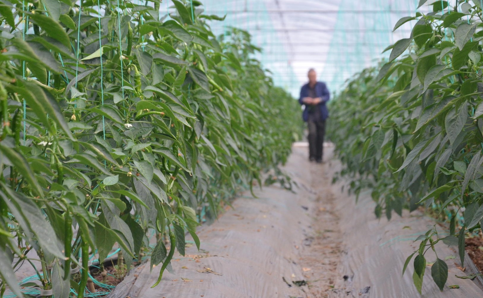 村民段春英用蚯蚓糞種植的辣椒