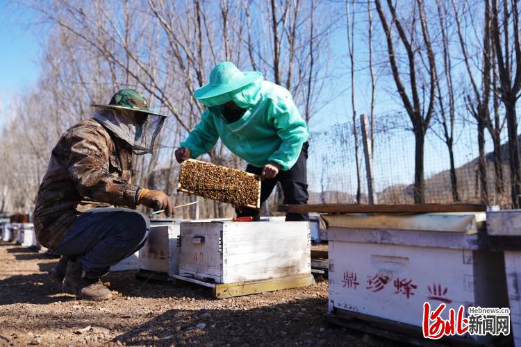 2022年3月1日,在河北省遵化市娘娘莊鄉(xiāng)鼎珍養(yǎng)蜂專業(yè)合作社內,蜂農正在檢查蜂群生長情況。河北省遵化市娘娘莊鄉(xiāng)因地制宜,通過“合作社+農戶”的模式,積極發(fā)展蜜蜂養(yǎng)殖,推動生態(tài)產業(yè)健康發(fā)展,實現農民增收致富。