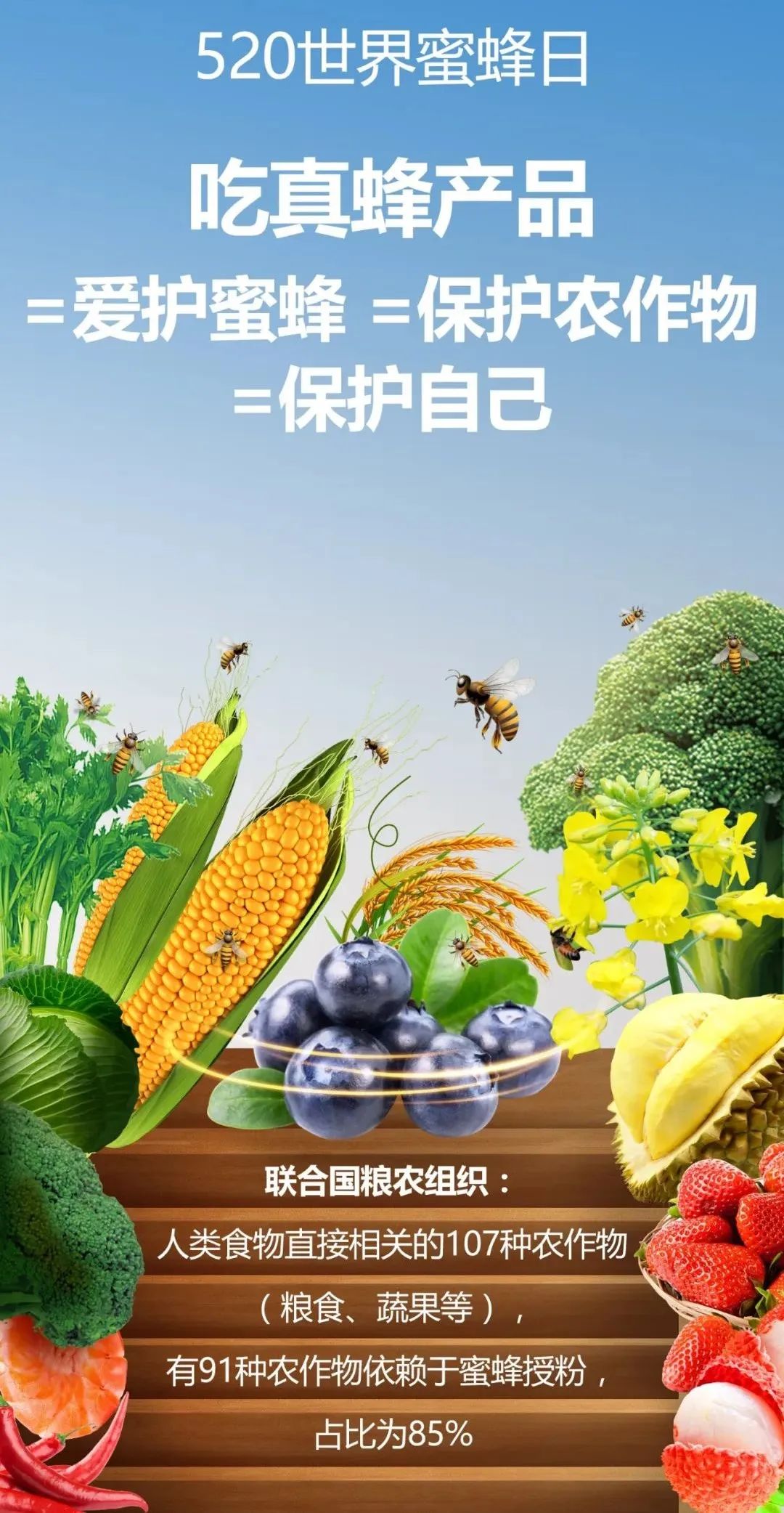 因此,在520這個特殊的日子,呼吁大家要通過蜜蜂的傳花授粉,一方面糧食、蔬菜、瓜果的產(chǎn)量也會大幅增加,有利于保障人類的糧食安全;另一方面使植物繁衍順利進(jìn)行,為改善生態(tài)環(huán)境發(fā)揮了不可替代的作用。讓蜜蜂成為我們健康生活的一部分,讓我們生活的世界更加美好~~