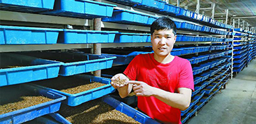 觀察昆蟲生長(zhǎng)狀況,調(diào)節(jié)合適的溫度、濕度,定時(shí)定量喂食……一大早,29歲的張廣杰就在新疆農(nóng)業(yè)大學(xué)駐瑪納斯縣科研基地的昆蟲養(yǎng)殖車間里忙碌起來(lái)?! ?/p>