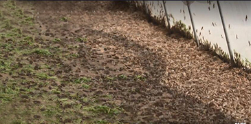 走進河北省保定市阜平縣王林口鎮(zhèn)前辛莊螞蚱養(yǎng)殖基地,一排排養(yǎng)殖大棚格外引人注目。大棚內(nèi)密密麻麻的螞蚱四處飛舞,忙著覓食,養(yǎng)殖負責人顧淑芳正忙著給螞蚱大棚通風、噴水。
