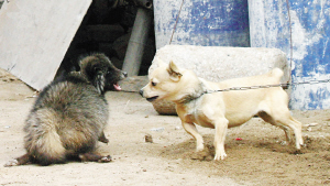 11月23日下午,一只40多厘米長的動(dòng)物跑到省會(huì)南村鎮(zhèn)董女士家,與家犬廝打起來。