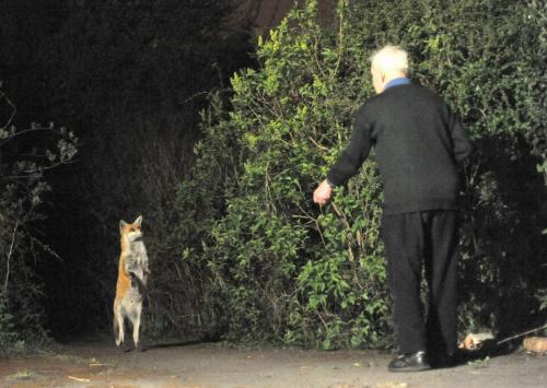 英國一狐貍家族會站立討食 像寵物狗一樣溫順(圖文)