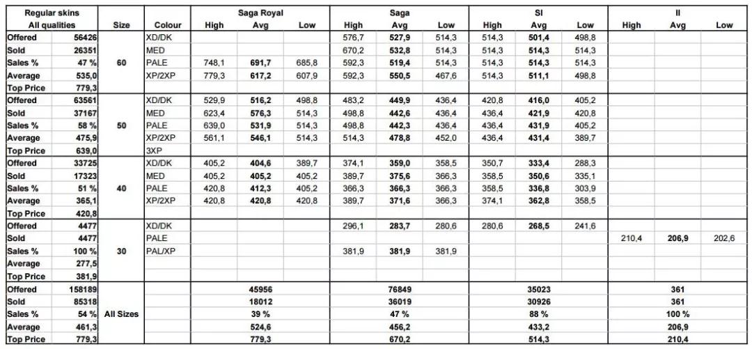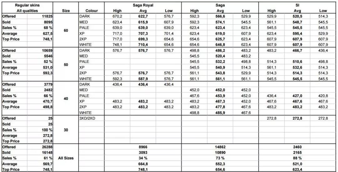 芬蘭12月拍賣(mài)會(huì)結(jié)束了,20日銷(xiāo)售的是158,000張藍(lán)狐皮,因?yàn)橘I(mǎi)家選擇性的購(gòu)買(mǎi),公司采取了價(jià)格保護(hù)政策,與9月份相比價(jià)格微降,最活躍的買(mǎi)家是韓國(guó)和中國(guó)。