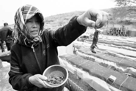 圖片說明:養(yǎng)殖場(chǎng)的女主人向記者展示貂崽的尸體。
