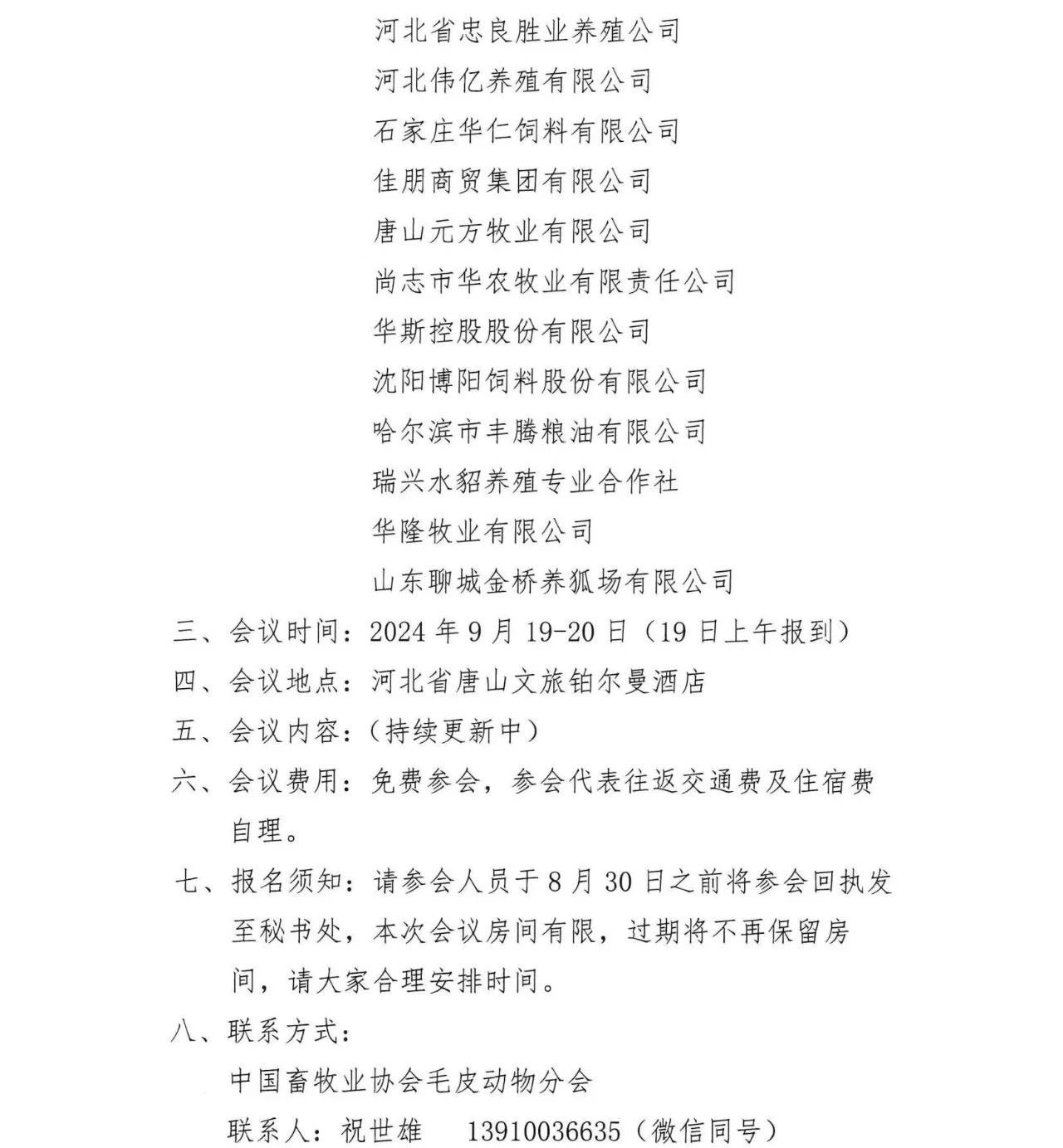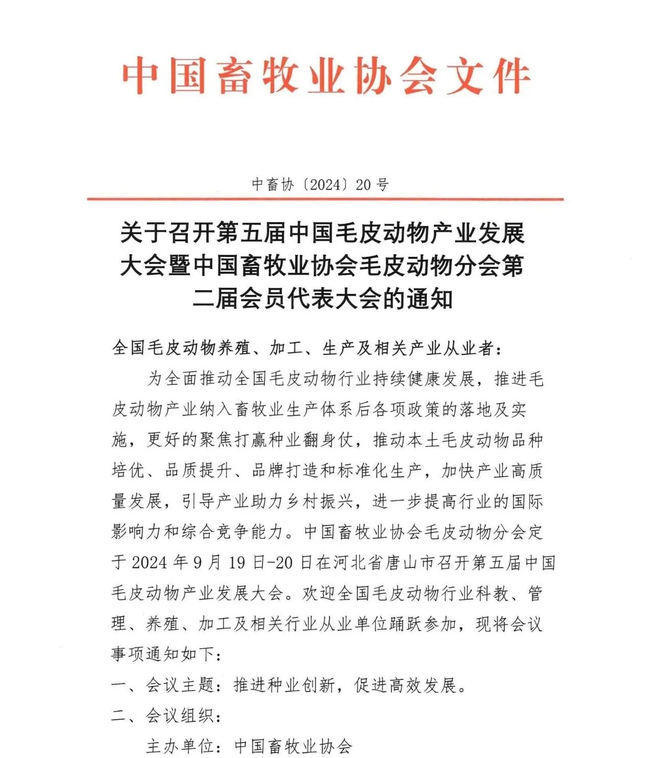 關(guān)于召開第五屆中國(guó)毛皮動(dòng)物產(chǎn)業(yè)發(fā)展大會(huì)暨中國(guó)畜牧業(yè)協(xié)會(huì)毛皮動(dòng)物分會(huì)第二屆會(huì)員代表大會(huì)的通知