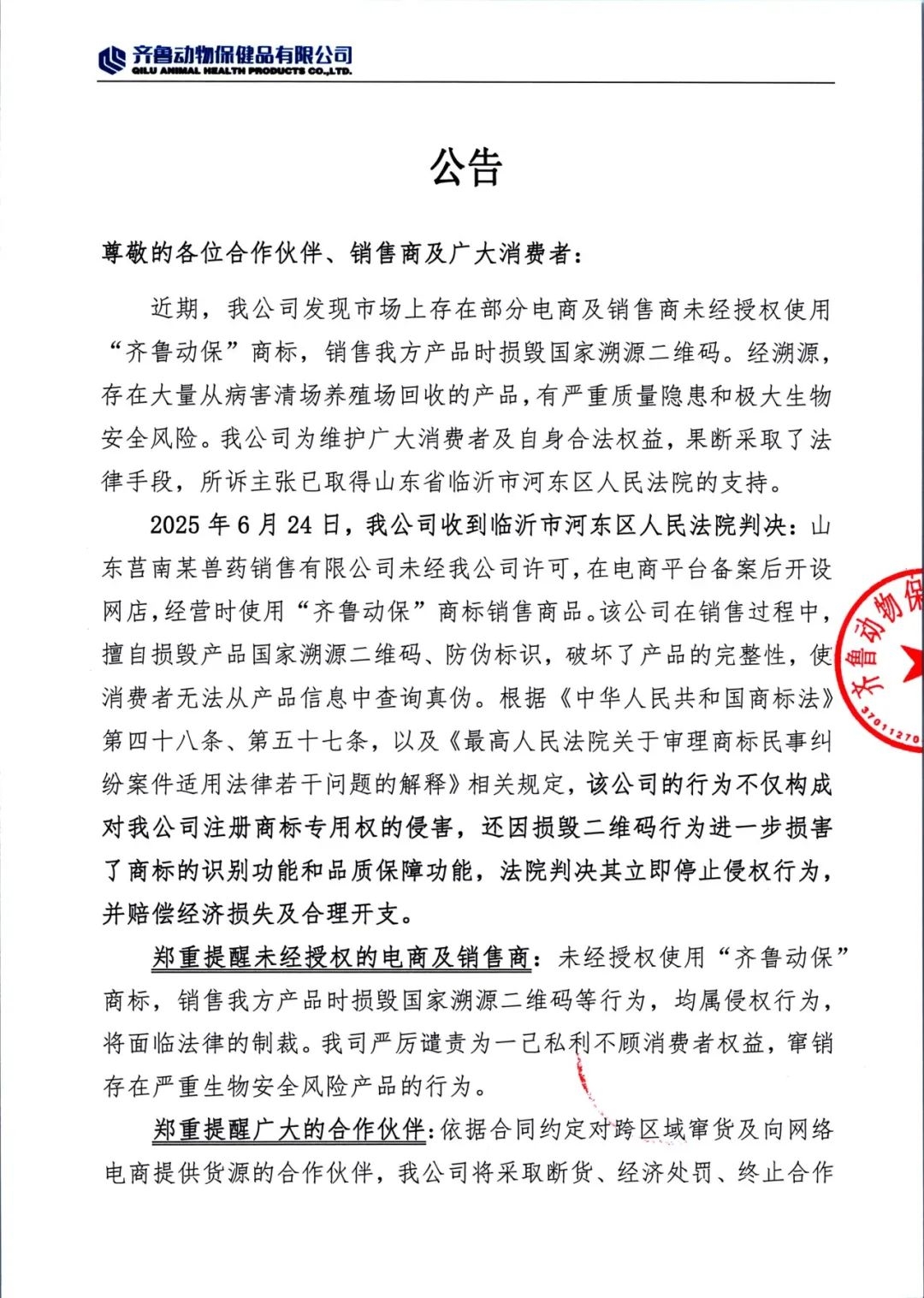 齊魯動(dòng)保關(guān)于嚴(yán)厲打擊商標(biāo)侵權(quán)及損毀溯源二維碼行為的公告