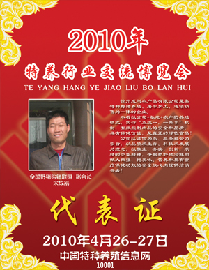 上面是2010年特養(yǎng)行業(yè)交流博覽會(huì)代表證,請(qǐng)企業(yè)提供相關(guān)資料支持會(huì)務(wù)工作,謝謝!