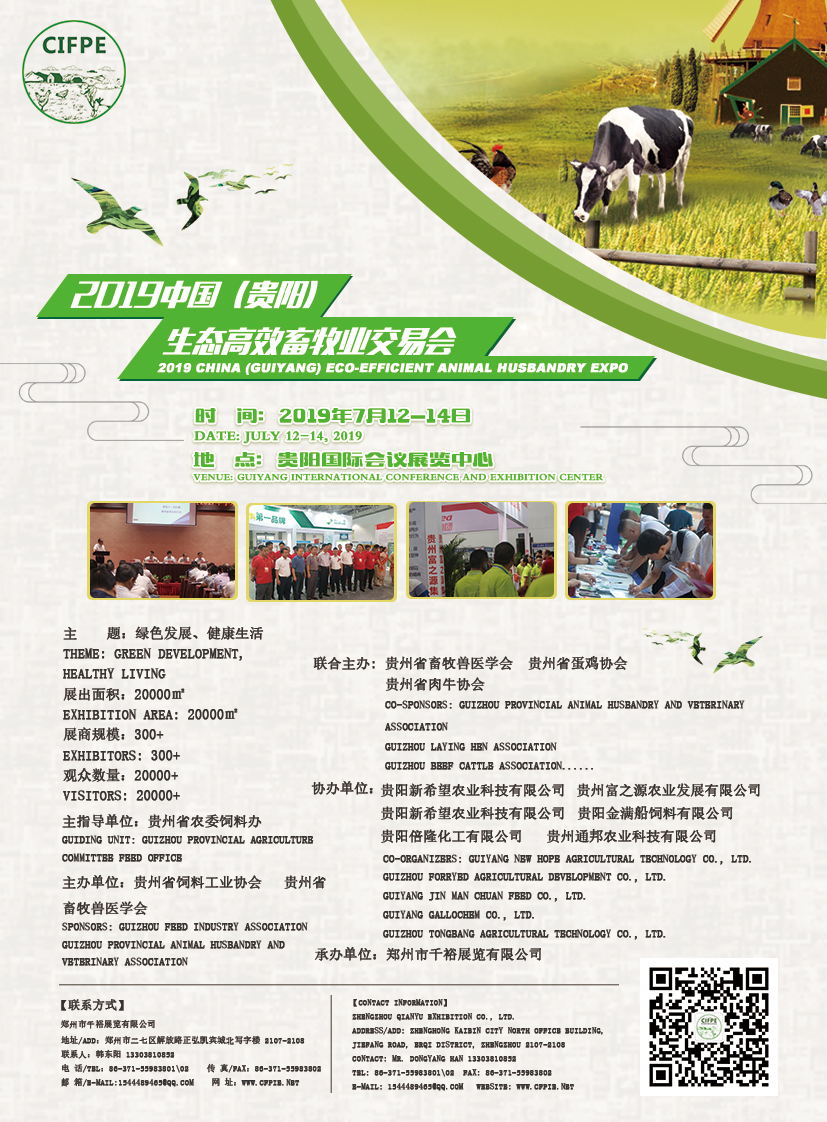 2019中國國際(貴陽)生態(tài)高效畜牧業(yè)交易會將吸引全球最先進(jìn)的畜牧機(jī)械設(shè)備、飼料及飼料添加劑、獸藥和畜牧產(chǎn)品供應(yīng)商來貴陽參展參會,推動貴州省畜牧行業(yè)轉(zhuǎn)型升級向現(xiàn)代畜牧業(yè)邁進(jìn)。展會聚焦畜牧業(yè)生產(chǎn)的規(guī)?;?biāo)準(zhǔn)化、產(chǎn)業(yè)化的先進(jìn)技術(shù)、新設(shè)備及新產(chǎn)品;努力提升畜牧業(yè)的綜合生產(chǎn)能力;不斷提升畜牧業(yè)科技支撐能力;推進(jìn)畜牧業(yè)轉(zhuǎn)型升級提質(zhì)增效。深度契合未來“綠色發(fā)展、健康生活”主題以及我國畜牧業(yè)發(fā)展實現(xiàn)“從傳統(tǒng)畜牧業(yè)向現(xiàn)代畜牧業(yè)加快轉(zhuǎn)型等發(fā)展趨勢”打造一個具有全球影響力,集創(chuàng)新技術(shù)合作、高端產(chǎn)品展示、貿(mào)易洽談等諸多功能為一體的國家級畜牧行業(yè)會展綜合體。