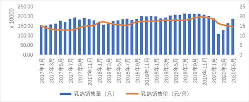 3、乳鴿銷量持續(xù)回升,價(jià)格下調(diào)