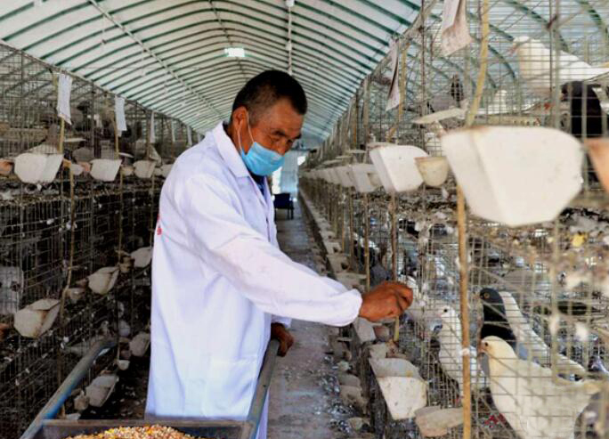 這些優(yōu)質(zhì)肉鴿生長周期快,半年即可成長為種鴿。而乳鴿和鴿蛋6天即可出欄一次。為了讓鴿子們體質(zhì)更加強壯,口感更加鮮美,通過邀請新蔡縣里的農(nóng)業(yè)專家到棚指導,李斌還專門在廠區(qū)空地搭建一座大型“飛棚”,專供鴿子們“鍛煉身體”,有效增強了種鴿體質(zhì),提高了防病害能力和乳鴿成活率。