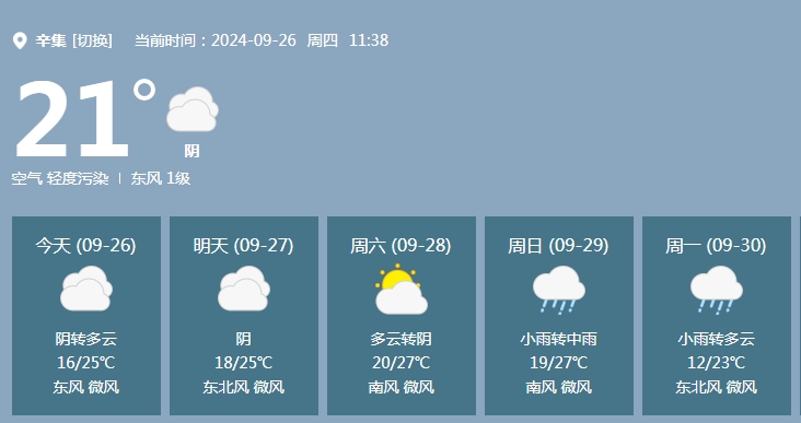 溫馨提示:陰天,建議穿著長袖T恤、襯衫等服裝。