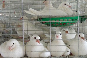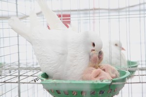 小乳鴿孵化出殼后種用白羽王鴿進(jìn)入育雛期,眾所周知鴿子屬于晚成鳥,剛剛出殼的小雛鴿,根本不能自己采食,需要親鴿分泌奶樣鴿乳,口對(duì)口喂養(yǎng)長大直到其作為商品出售的。在育雛期間公鴿和母鴿均會(huì)分泌鴿乳,共同照顧喂養(yǎng)乳鴿,為確保種鴿鴿乳分泌在此階段需加強(qiáng)車間管理,提供優(yōu)質(zhì)合理配比日糧,適當(dāng)補(bǔ)料增加日糧供給,同時(shí)補(bǔ)充維生素、礦物質(zhì)等,幫助親鴿營養(yǎng)的全面吸收,利于乳鴿的生長發(fā)育,因乳鴿出售標(biāo)準(zhǔn)不同,種鴿育雛期約3~4周。需特別注意的是:高產(chǎn)種鴿在乳鴿哺育2~3周左右后會(huì)再次進(jìn)行交配,繼而產(chǎn)下下一窩的鴿蛋,種鴿一邊孵蛋一邊哺育乳鴿,這樣的種鴿繁殖周期只有約40天左右時(shí)間。