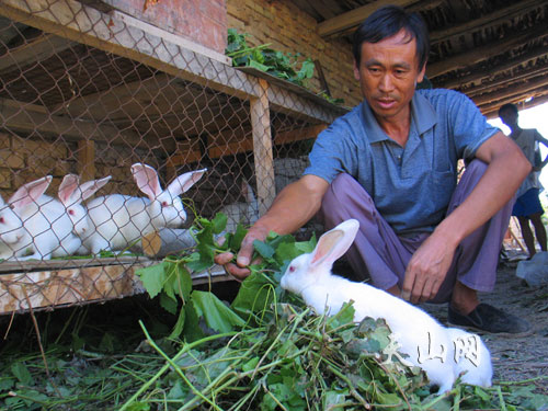 段新安發(fā)現(xiàn)肉兔好養(yǎng)上了“癮”,他把兔窩蓋成防空洞像“宮殿”似的,讓肉兔好乘涼。平時(shí)干完農(nóng)活回家順便拔點(diǎn)車前草、長壽菜、蒲公英等野草,經(jīng)常采食的野草代替了獸藥,不僅營養(yǎng)豐富,而且還具有防治疾病和促進(jìn)生長的作用,可獲得“花錢少、用藥方便、療效好”的防治效果。