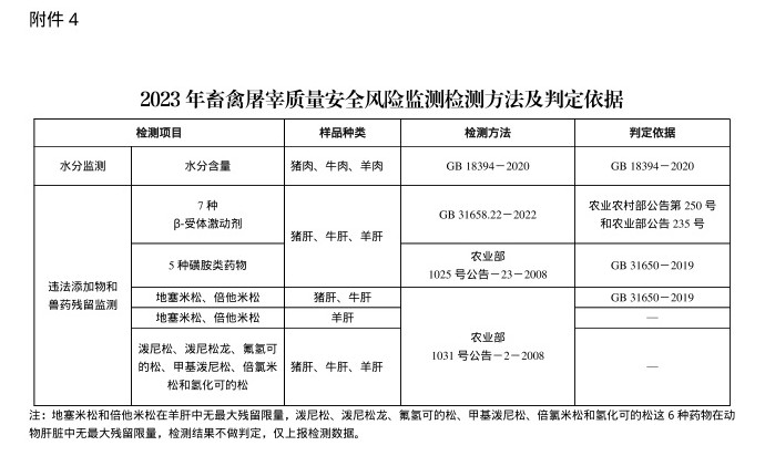 4. 2023年畜禽屠宰質量安全風險監(jiān)測檢測方法及判定依據
