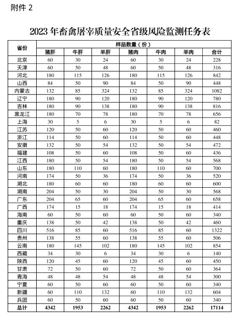 2. 2023年畜禽屠宰質量安全省級風險監(jiān)測任務表