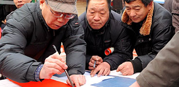 1月10日,河南省文聯(lián)的一名書法家為群眾書寫春聯(lián) 2012年1月10日,河南省文化科技衛(wèi)生“三下鄉(xiāng)”啟動儀式和集中服務(wù)活動在登封市盧店鎮(zhèn)中心廣場舉行。文化、科