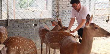 養(yǎng)殖戶查看梅花鹿身體情況。黃杉杉攝 近日,在河北省任丘市呂公堡鎮(zhèn)西袁莊村梅花鹿養(yǎng)殖基地里,150頭梅花鹿正處于脫毛期 ,身上的梅花斑點(diǎn)逐漸顯露,一只只小鹿憨態(tài)可掬、十