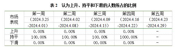 根據(jù)4月份集散地的監(jiān)測結(jié)果得知,商戶總體對未來市場持中立態(tài)度。具體來說,在4月份的五周中,商戶大多認(rèn)為銷售情況會基本持平,表明了其對市場未來走勢的中立態(tài)度(見表2)。