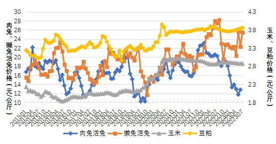 圖8 2015年1月以來活兔收購價格及飼料價格