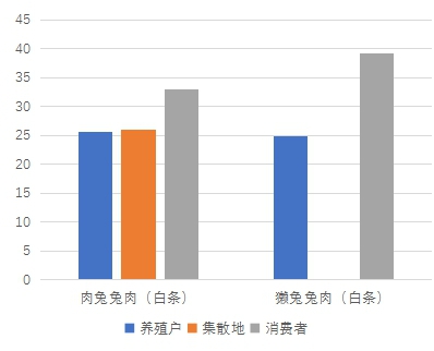 [1]平均各地消費(fèi)價格的時候,由于福建省的兔肉均為黃兔和黑兔肉,價格比全國其他地方高出很多,實際計算時未將其計算在內(nèi)。
