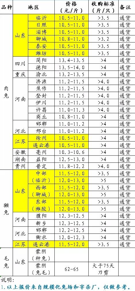 活兔全國(guó)各大市場(chǎng)價(jià)格(2019.9.6)