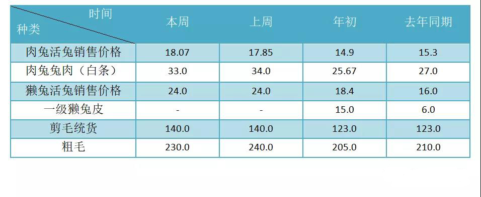 最近一周肉兔活兔價(jià)格為18.07(元/公斤),與上周相比上升1%,與年初相比上升18%