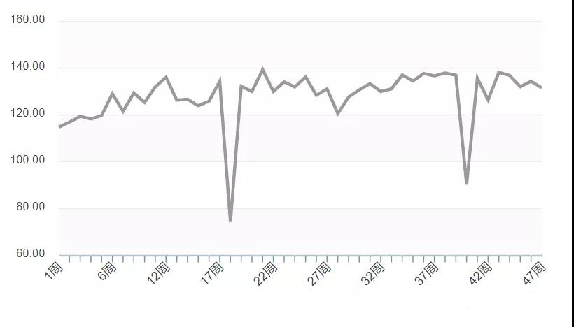 最近一周肉兔產(chǎn)業(yè)表現(xiàn)為131.07,與上周相比下降2.77%