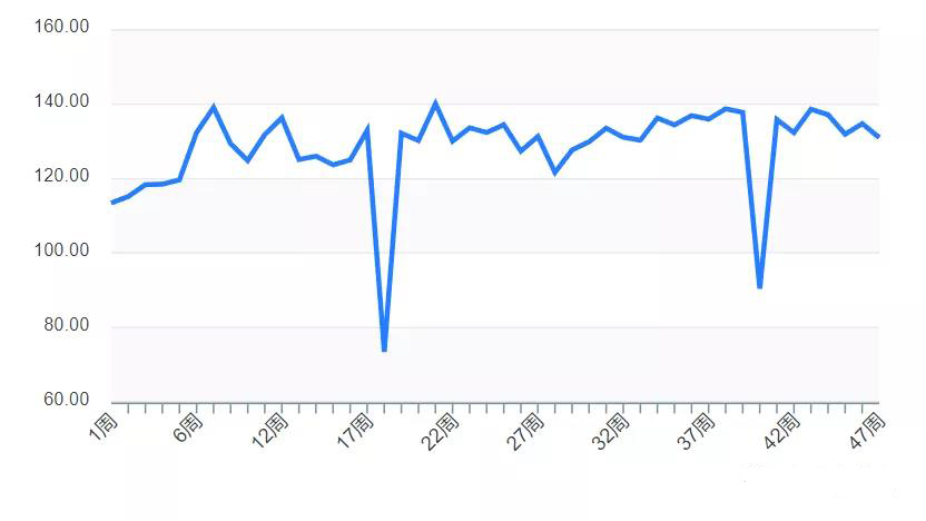最近一周兔產(chǎn)業(yè)表現(xiàn)為131.59,與上周相比下降2.12%