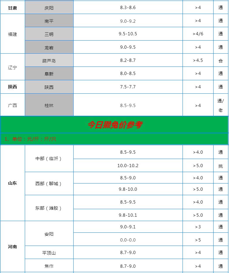 全國(guó)各地兔價(jià)行情信息快報(bào)?。?022.6.24)