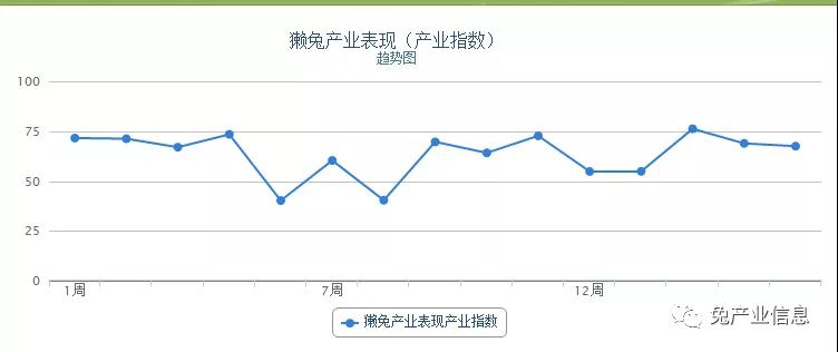 最近一周獺兔產(chǎn)業(yè)表現(xiàn)為67.55,與上周相比下降了2.07%