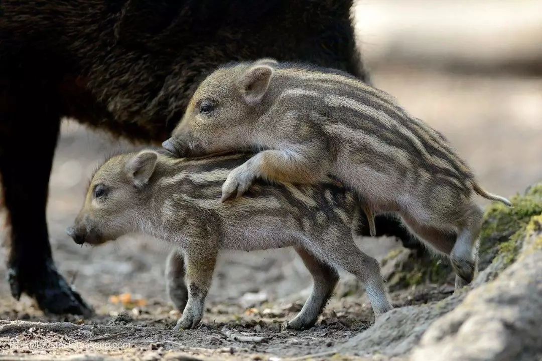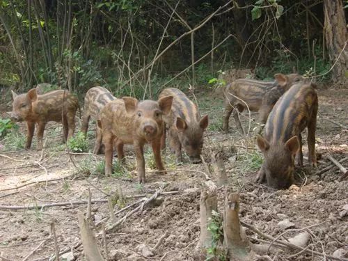 野豬被毛粗而稀,一般為灰色或灰黃色,成年母豬體重90千克-130千克,對外部環(huán)境反應(yīng)靈敏。母野豬乳頭一般6對~7對,年產(chǎn)2胎,一般每胎12只~26只。適宜的配種時(shí)間為出生后5月齡-6月齡,體重40千克~60千克。母野豬發(fā)情時(shí),一般采取初產(chǎn)母豬配早、經(jīng)產(chǎn)母豬配晚的原則。野豬發(fā)情時(shí),外生殖器明顯紅腫,當(dāng)外生殖器由紅色變?yōu)榘底仙?,由腫脹變?yōu)樯园櫩s,或用手摁住母豬臀部,母豬站立不動時(shí),為最好的配種時(shí)間。配種時(shí),公母野豬配種時(shí)間約需奶分鐘左右,比家豬需時(shí)略長,根據(jù)經(jīng)驗(yàn),最好采取復(fù)配方式,即間隔6小時(shí)~8小時(shí)后再重復(fù)交配一次,這樣可明顯提高母豬的受胎串。母野豬發(fā)情適合交配時(shí),也可采用將公豬趕人母豬圈內(nèi)1天-2天的方法,此時(shí)公野豬夜間可多次爬跨、交配。待確認(rèn)交配成功后,將公野豬趕出。過20天后,再觀察母野豬是否還發(fā)情,一般母野豬發(fā)情周期為18天,如不發(fā)情,證明野豬已交配成功。
