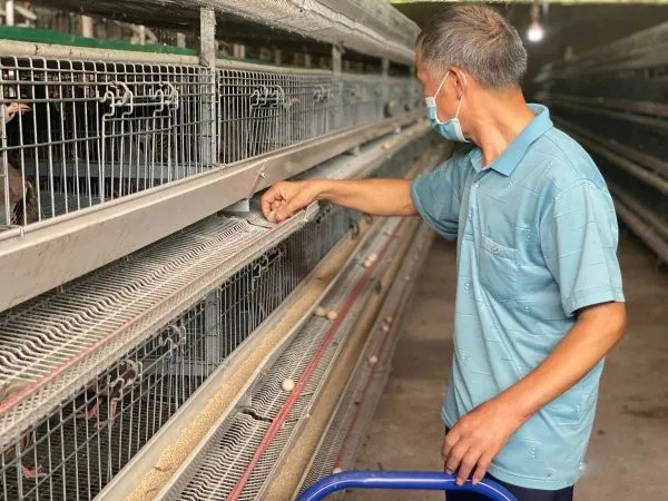 在楊安輝的帶領(lǐng)下,記者走進了村委大樓旁的溫室大棚,里面正飼養(yǎng)著1萬羽鷓鴣。800平方米的大棚里兩面透風(fēng),干凈整潔。養(yǎng)殖籠為四層的立體種鴣舍,配置有自動飲水設(shè)備、清糞卷帶、電動清糞機等。這個大棚里養(yǎng)殖的都是成年鷓鴣,它們作為“種鴣”,不斷地產(chǎn)蛋,為村里創(chuàng)造效益。據(jù)悉,每天這個大棚都能收獲3500枚左右的鷓鴣蛋。