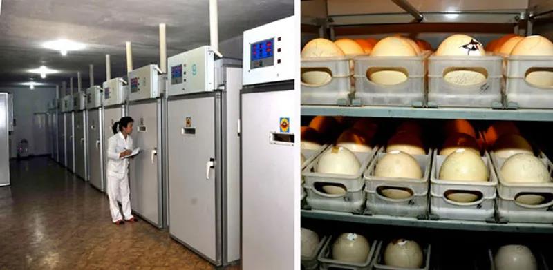 所有的鴕鳥(niǎo)蛋將會(huì)在這座大樓的恒溫孵化室里得到精心照料。那些優(yōu)質(zhì)的鴕鳥(niǎo)破蛋后,會(huì)發(fā)現(xiàn)它們的家園簡(jiǎn)直就是宮殿,人類(lèi)就是它們的貼身仆從。為了扶持鴕鳥(niǎo)產(chǎn)業(yè),朝鮮將平壤北部鄰近機(jī)場(chǎng)的一片山谷規(guī)劃成鴕鳥(niǎo)養(yǎng)殖基地,整片山谷都是鴕鳥(niǎo)的地盤(pán)。根據(jù)朝鮮的媒體報(bào)道,整座養(yǎng)殖場(chǎng)建有 110 多座鴕鳥(niǎo)畜欄,以及包括孵化場(chǎng)、肉類(lèi)加工廠、科技園和工人活動(dòng)廳等 10 處設(shè)施。