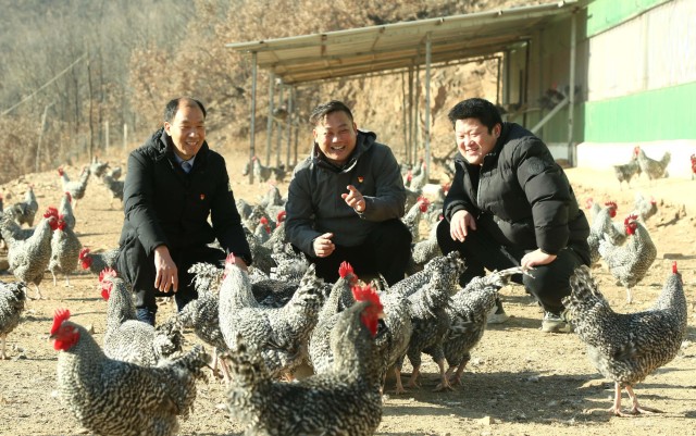 近年來,地處豫西伏牛山區(qū)的河南省汝陽縣積極發(fā)展“一鄉(xiāng)一業(yè)、一村一品”富民產(chǎn)業(yè)。在中信重工駐村幫扶工作隊(duì)的幫扶下,汝陽縣王坪鄉(xiāng)柳樹村依靠當(dāng)?shù)厣鷳B(tài)資源,根據(jù)市場(chǎng)需求,科學(xué)飼養(yǎng)蘆花雞、波爾山羊等,發(fā)展“訂單農(nóng)業(yè)”,促進(jìn)農(nóng)民增收致富。圖為汝陽縣王坪鄉(xiāng)柳樹村幸福路養(yǎng)殖專業(yè)合作社養(yǎng)殖的蘆花雞即將外銷,駐村幫扶工作隊(duì)員和村民滿臉喜悅。