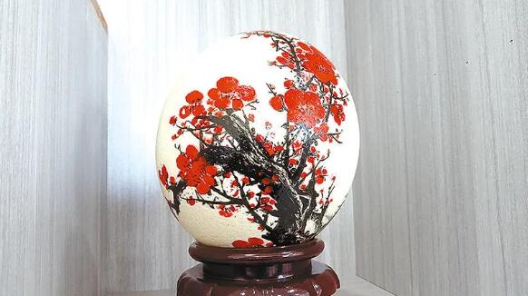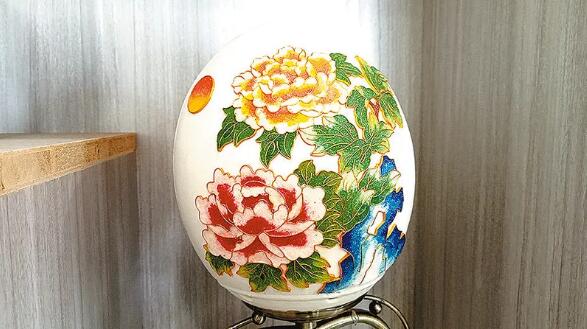 雍容華貴的牡丹、逸趣橫生的梅花、濯清漣而不妖的蓮花、活潑靈動(dòng)的金魚……如果不是親眼所見(jiàn),還真讓人難以置信,一枚枚鴕鳥蛋殼上竟能彩繪、雕刻出如此驚艷的圖案,而這些藝術(shù)品就來(lái)自上河南省駐馬店市蔡縣的一個(gè)小鄉(xiāng)村。