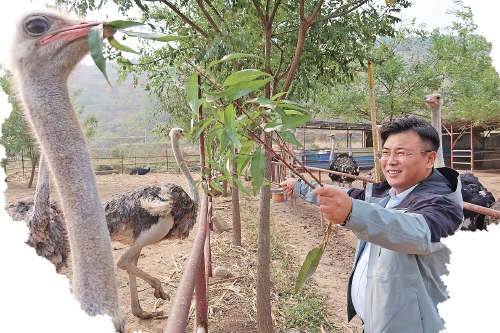 “有一回去滕州學習考察,看見一個農(nóng)家樂老板養(yǎng)了幾只鴕鳥,覺得很新奇。一問才知道,人家這鴕鳥不是養(yǎng)來吃的,是為了吸引顧客。”當時楊雨心里就有了盤算。他回到村里,與“兩委”成員一商量,決定發(fā)展這一特色養(yǎng)殖,把村里的現(xiàn)有資源化零為整。