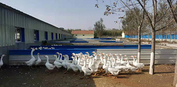 山東省青島市萊西市姜山鎮(zhèn)東百戶屯村的青島鑫河畜禽良種繁育場,一只只羽色潔白的五龍鵝展開雙翅,正在悠閑地散步覓食?! ∥妪堸Z是農(nóng)業(yè)農(nóng)村部認(rèn)定的地方良種,也是目前世界